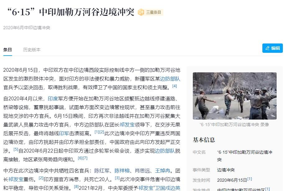 头条百科:“6·15”中印加勒万河谷边境冲突