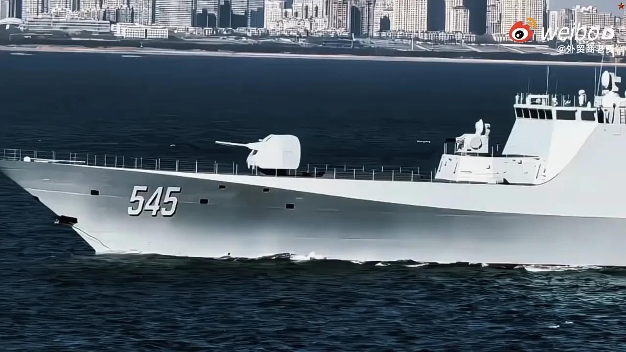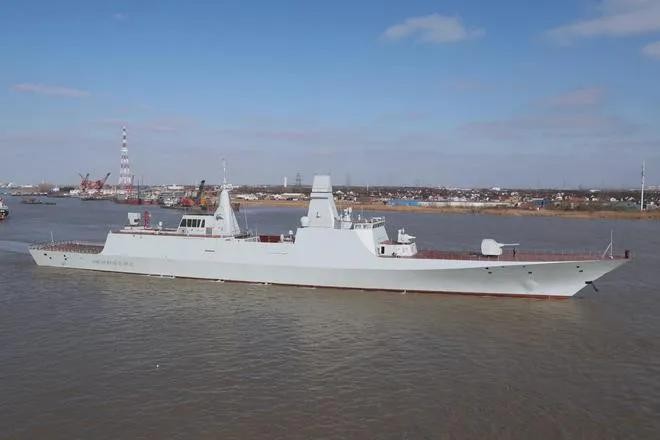 建造情况:首制舰545号漯河舰在2022年5月开工,2023年8月下水,2024年1月进行首次海试,预计2024年底交付服役。基础武器:一门100毫米PJ-87舰炮,两座鱼雷发射管,一座1130近防炮和一座18联海红旗10近程导弹,直18反潜直升机。垂发系统:一座32单元海通-1型冷热并架垂发系统,可搭载多样化的导弹,如海红旗16中程防空导弹、反舰导弹或反潜鱼雷。反舰导弹:舰体中部宽大处,应可搭载鹰击-83反舰导弹,射程500公里。动力系统:搭载一台QC280国产燃气轮机和两台16PA6STC柴油机,总功率达到了33兆瓦,航速在30节左右。隐身设计:采用了先进的隐身设计,船体采用了大量的吸波材料,雷发反截面非常小。雷达系统:使用最新型的双面旋转双波段(X波段和S波段)氮化镓有源相控阵雷达和一体化桅杆设计。