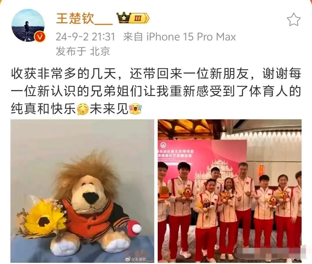 面对全红婵这看似“调皮”的“小恶作剧”,王楚钦展现出了他幽默风趣的一面。他得知此事后,并没有丝毫生气,而是在微博上发布了一条动态,上面写道:“你是不是不打算回北京了,这么大胆!”简单的一句话,却充满了朋友间开玩笑的轻松氛围。这条动态一经发出,立刻引来了众多网友的点赞和评论。大家纷纷表示:“王楚钦也太接地气了,完全没有冠军的架子,就像身边的好朋友一样。”他的这一回应,不仅化解了可能出现的尴尬,还让大家看到了他作为大男孩的独特魅力。