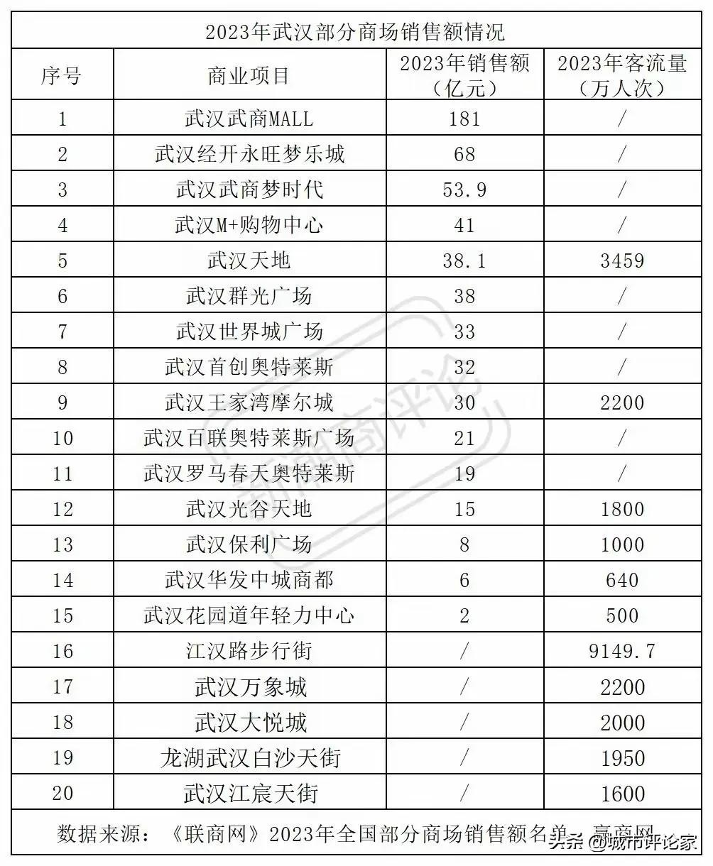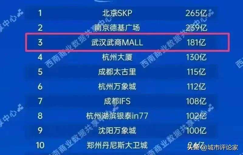 武汉商场TOP10名单出炉!武商MALL:年销售额181亿!成为最强霸主