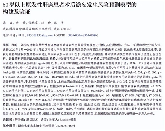 [1]马垚.60岁以上原发性肝癌患者术后谵妄发生风险预测模型的构建及验证,临床肝胆病杂志,2024-09-25
