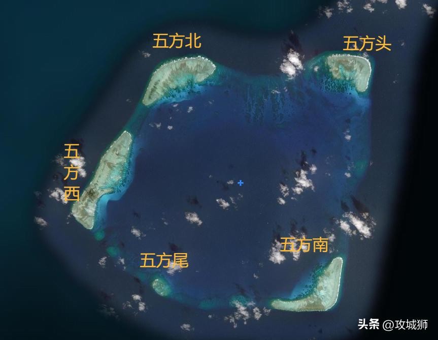 从卫星图来看:一般越南控制的岛礁,要么进行了扩建并有密密麻麻的建筑,要么有简易的碉堡;一般菲律宾控制的岛礁,都有简易的房屋;但五方礁上面却什么都没有,这是极度不正常的。