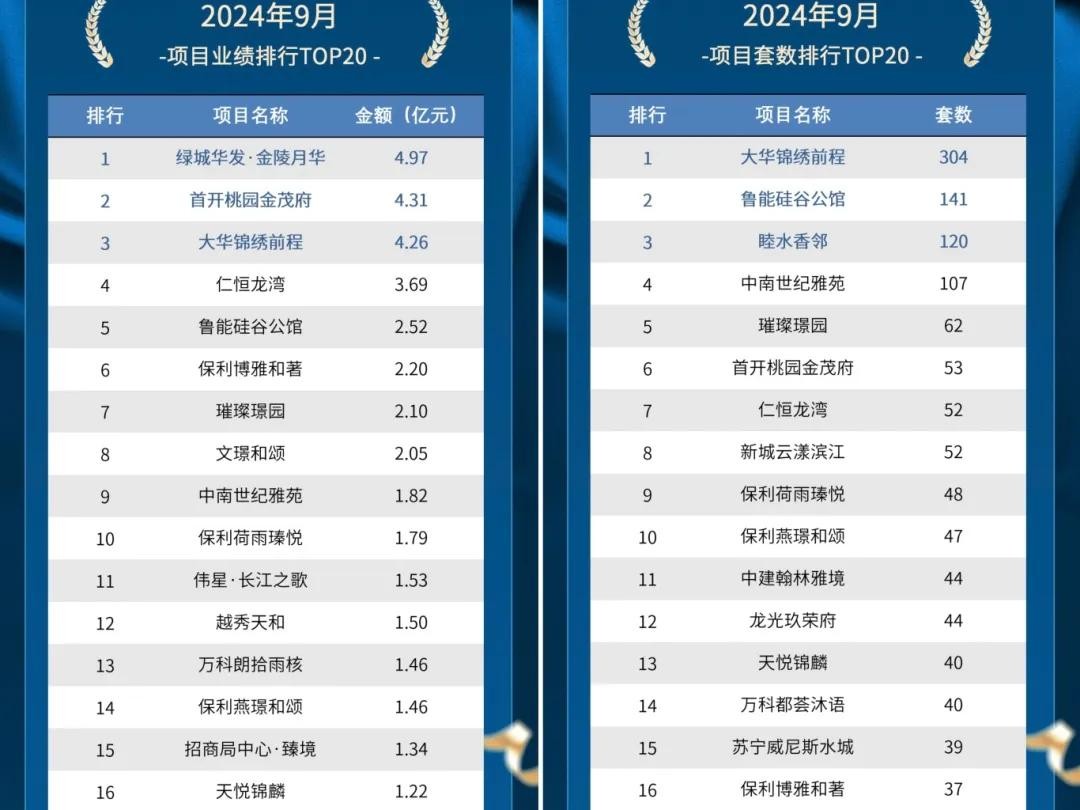 以江宁为例,今年全面推进房票安置,很多楼盘卖得非常好。今年9月南京卖得最好的楼盘,就是参与了房票安置的江宁滨江的大华锦绣前程、鲁能硅谷公馆、江宁的璀璨璟园等一批楼盘,其中江宁滨江的大华锦绣前程9月直接以304套房位居榜首!