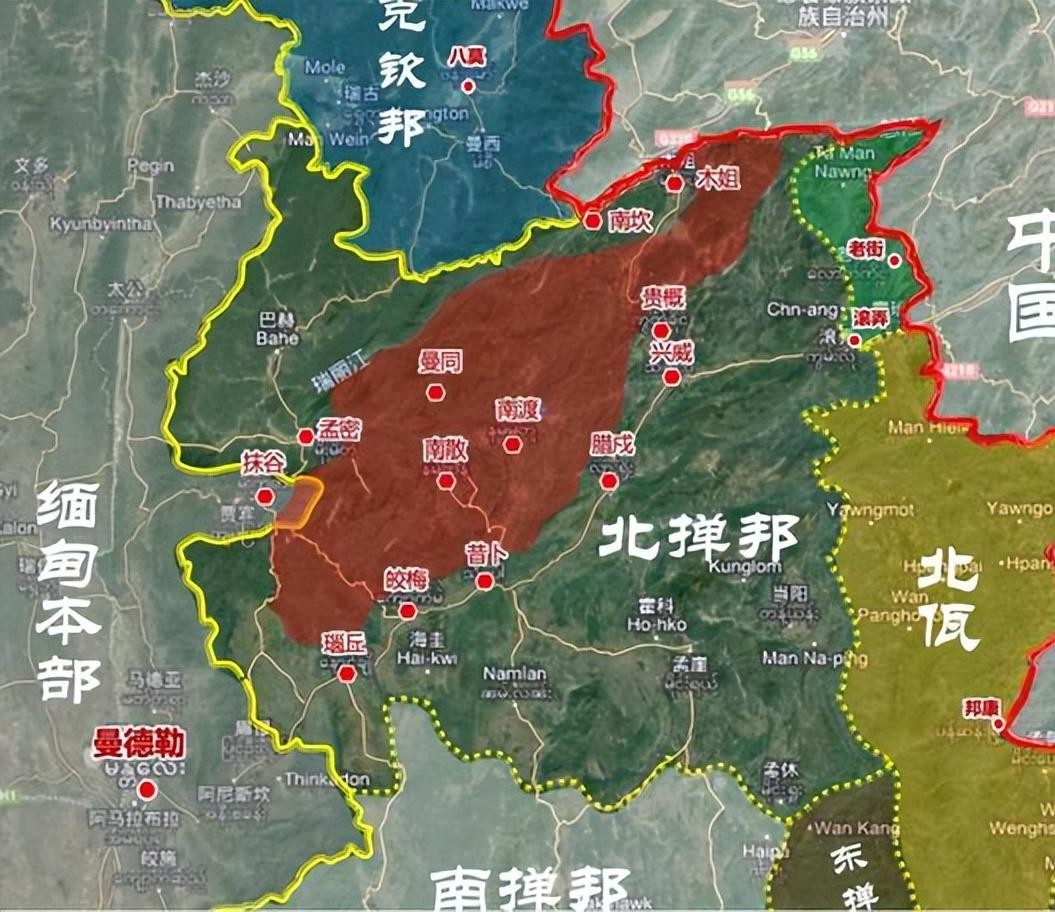 缅甸德昂族大致分布区域,与果敢宣称的地区有不少重叠