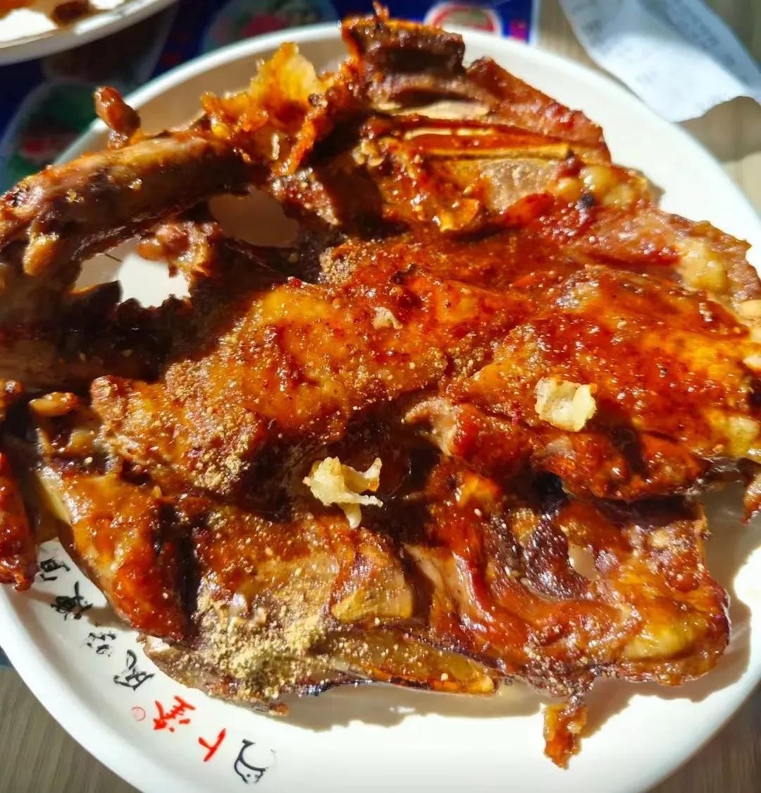 烤鸡骨架,基本是每桌必点,经典的酱香味中带点辣,咸鲜中还有点甜,很有当地特色,一定要趁热吃,是真的很哇塞。