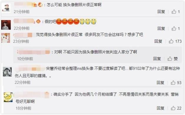 其实对于这样的乌龙消息,中国网友的看法各有褒贬,有的人认为乔妹一直就有这样的习惯,在说了换个头像删除点照片,就说人家离婚了?分手了,是不是有点太片面了呢?毕竟两人从结婚期间到现在一直没有传出什么绯闻,这样的消息简直不可靠,但是也有网友表示:乔妹是不是真的是出现了问题,要不然也不会平白无故的去换头像,或者删除照片吧,想必还是遇到了一些问题。