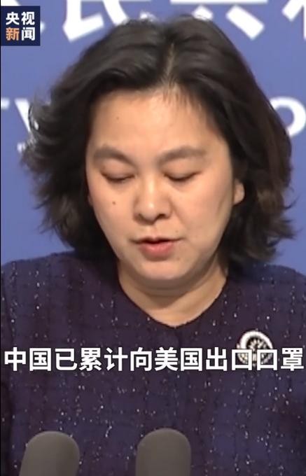 对此,外交部发言人华春莹表示:截至11月22日,中国已累计向美出口口罩约394.3亿只,相当于每个美国人获得约120个中国口罩。中方还同美方分享了防控和诊疗经验。