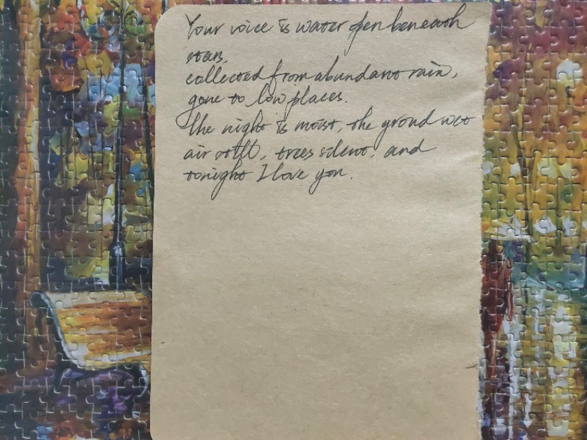 夜晚潮湿,地面潮湿,空气寂静,树林沉默,今夜我爱你。