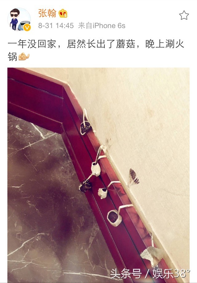 近日“霸道总裁”张翰在微博PO出一张自己家的照片,并配文:一年没回家,居然长出了蘑菇,晚上涮火锅!