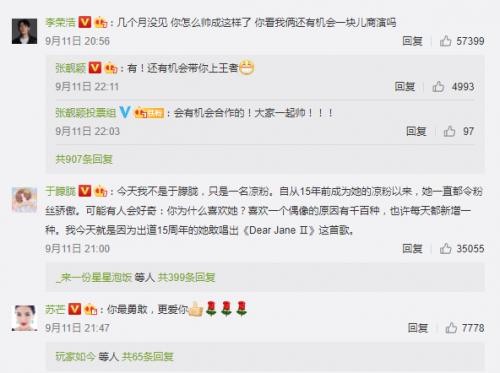 于朦胧更是暖心发言支持张靓颖,自称是她的粉丝凉粉并向她大胆告白。
