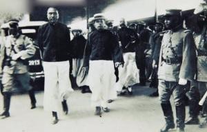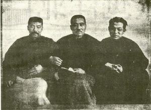张宗昌(中)与褚玉璞(左)、张学良(右)