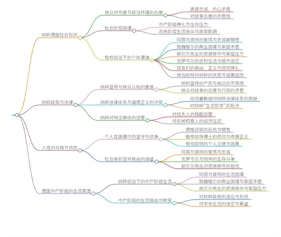纳粹政策下,生育多孩并非出于自愿和幸福,而是被国家强制和道德绑架。 玛丽和彼得的爱情与忠诚,在极端的政治压力下被牺牲,体现了个人价值在极权下的无力。 在极权统治下,个人的恐惧和绝望往往被忽视,甚至被当作牺牲品。