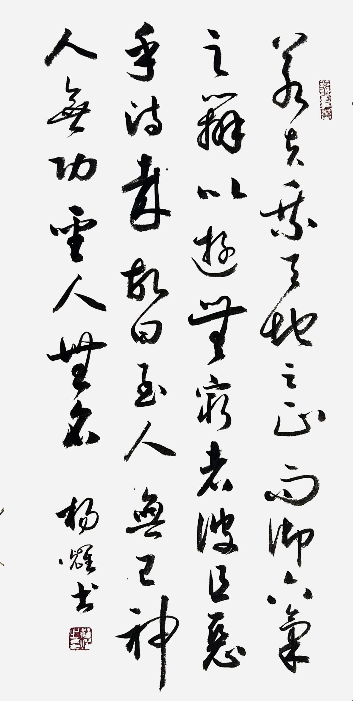 In June 2019, he signed a contract with Zhongminglian (Famous Artists Art Alliance).In recent years, three works have been selected and engraved in the Bairui Valley Scenic Area of Shenglian Mountain in Beijing; the works have been collected by the embassies of Korea, Congo (Kinshasa), Malawi, Burkina Faso, Ethiopia, Benin, Cameroon and Togo in China; in April and August 2022, personal calligraphy and painting exhibitions will be held at the Embassy of Togo in China and Beijing Fangshan Shenghui Resort respectively.On August 1, 2022, the "Yang Yao Running Script" written by him entered the Founder Font Library and was officially launched to promote at home and abroad.On May 1, 2023, the works were displayed in Times Square, New York, USA.In December 2023, "Yang Yao Calligraphy Style" was selected and compiled into the Dictionary of Chinese Calligraphy.