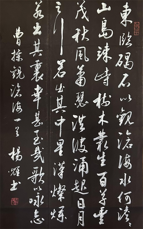 Since childhood, he liked calligraphy, often used his spare time to learn calligraphy, and never stopped writing, and dabbled in all kinds of calligraphy styles.From 2011 to 2013, as a doctoral supervisor of the Chinese Academy of Art, Mr. Zhang Rongqing studied calligraphy skills and theories systematically from Zhang Rongqing, Yang Mingchen, Miao Peihong, Zhang Shigang and Zhang Weizhong.He was also instructed by calligraphers such as Long Kaisheng, Fang Fang and yuan Yongqi.In December 2016, he attended the North Lanting Cursive Calligraphy Copying and Creation Seminar headed by Zhang Xuguang, Liu Hongbiao and Wang Houxiang.Calligraphy style esteems the "two kings", catching up with the Wei and Jin Dynasties, rooted in tradition, focusing on the foundation, rigorous style, elegant and handsome, appealing to both refined and popular tastes.In recent years, he has participated in many national book fairs, and has been selected for two military book fairs and won different awards.His works have been exhibited in the United States, Korea and Japan for many times, published in books, magazines, newspapers and hundreds of websites, and collected by many institutions, enterprises and collectors.In 2014, he was awarded the honorary title of "Huaxia Talent"by China's"Voice of the New Century-Beautiful China" campaign.He has published Yang Yao's Calligraphy Collection.