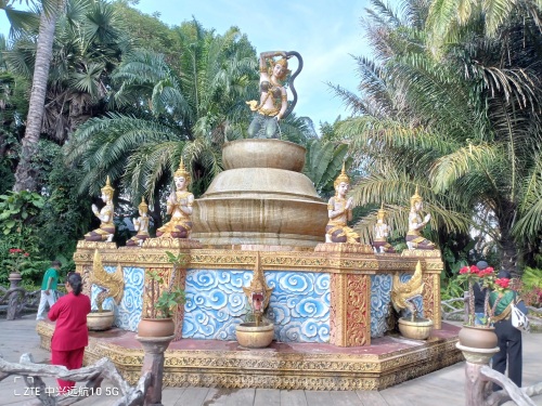 我们走进曼听公园,首先映入眼帘的是周恩来总理在1961年来到西双版纳参加“泼水节”的雕像,周总理身穿着傣族的服饰,与傣族人民共同欢度泼水节,犹如一位亲切和蔼的傣族老人。周总理是深受人民爱戴的总理,在此处拍照留念的人特别多。