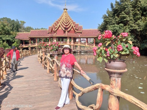 御花园。是傣王行宫附近的御花园,里边郁郁葱葱,有池塘,有荷花,开的非常艳丽。