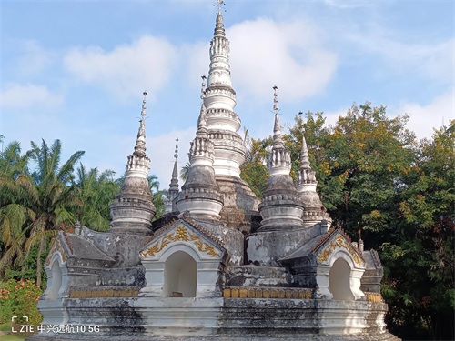 白塔。白塔是由一座母塔和周围八座小塔组成的塔群,整个塔群组成的浑圆柔媚的意象,把南传上座部佛教包容、解脱、通达、混成的佛旨和傣族善良、温和、柔情、优美的性格衬托而出。傣族是全民信佛的,大部分人都是信仰南传上座部佛教的。