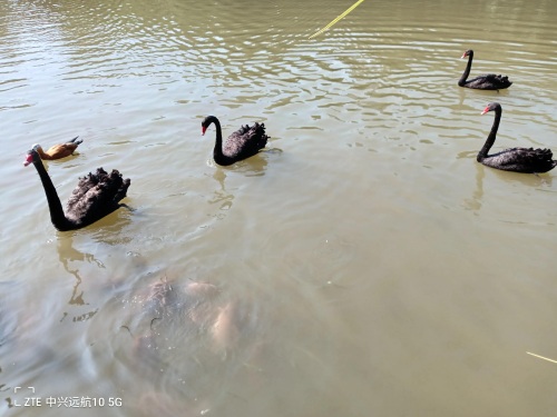 放生湖。放生湖是信奉佛教的信徒放生的地方,湖里的鱼蜜蜜麻麻,大小不均,湖面上还有几只黑天鹅。