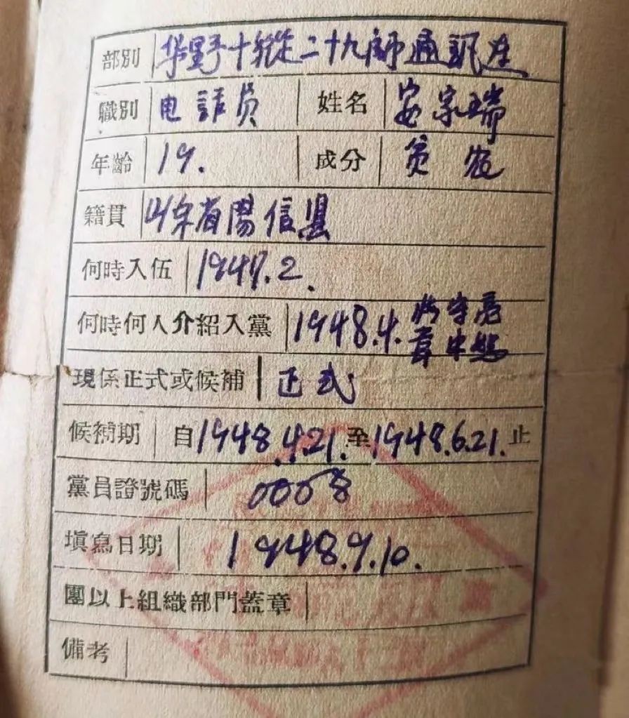 最早的士兵证,都还是手写的,上边详细纪录了部别、职别、年龄、成分、籍贯、何时入伍等信息。