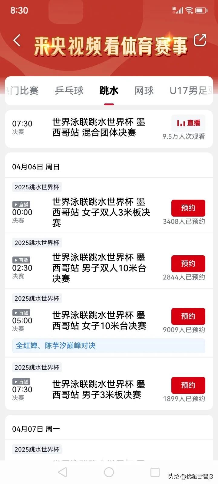 2025年跳水世界杯墨西哥站多项比赛进入决赛阶段,明天凌晨将进行女子单人10米台等决赛,具体决赛时间安排: