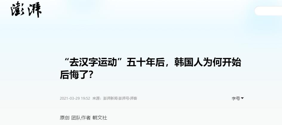 澎湃新闻:“去汉字运动”五十年后,韩国人为何开始后悔了?