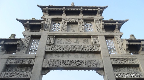 20多个人从常州中天体育馆出发,30公里就到了无锡江阴市月城镇的石塘湾公园,大门外停车场停好自行车,直接进了公园,公园石雕大门雄伟气派,石塘湾公园5个大字为知名书法家范曾先生墨宝,进门后一个小院有3个出口,各个出口后面又是不同的园林建筑,不一样的风景,到处是楼台亭阁,小桥流水,典型的江南古典园林,园内的房屋建筑粉墙黛瓦,都是徽派古建筑,江西的石牌坊一座又一座,石塘湾公园将江南园林,徽派建筑,江西雕刻艺术揉合在一起别有风味,风景独特,太有内涵: