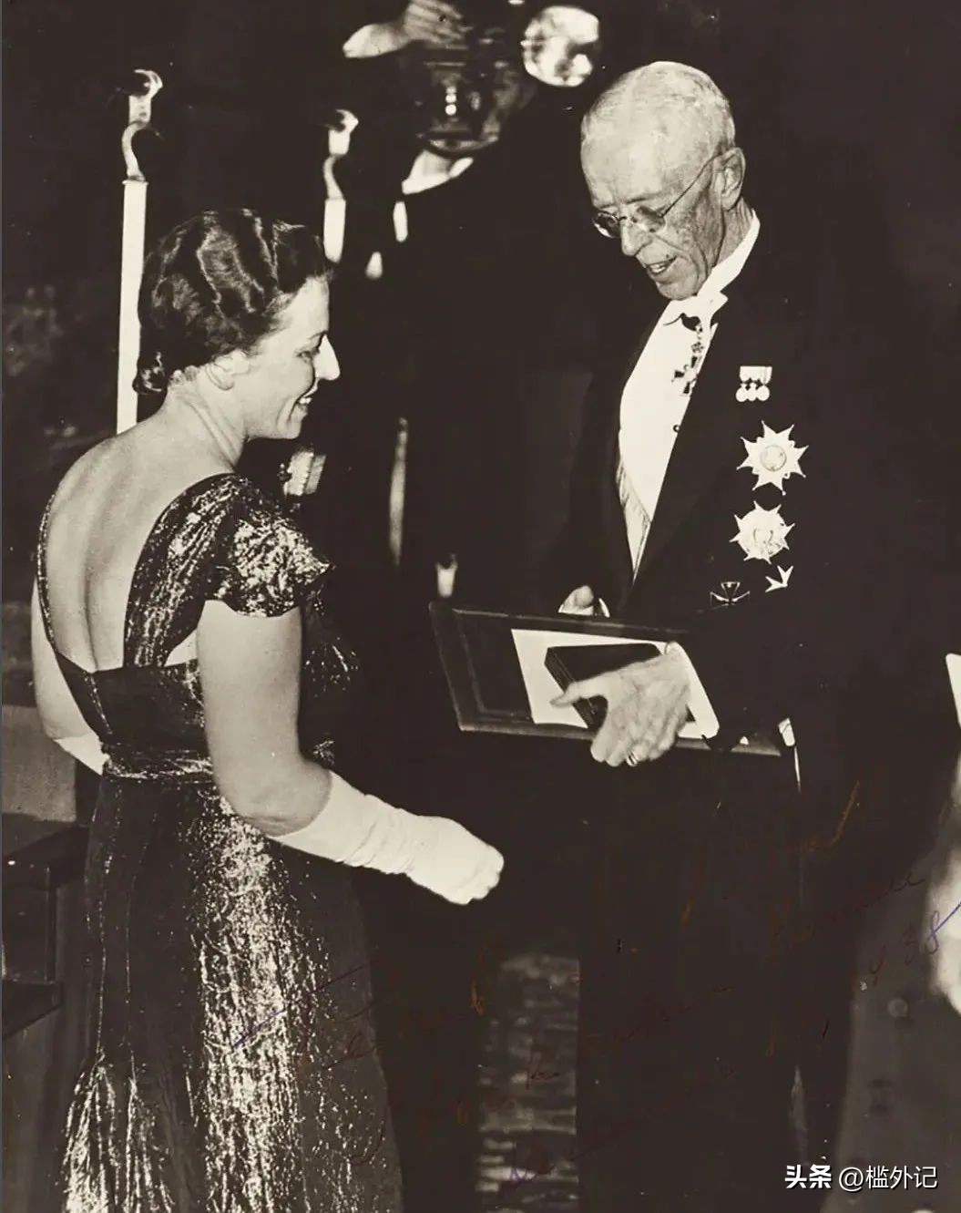 赛珍珠在诺贝尔文学奖颁奖典礼上从瑞典国王手中接过证书和奖章