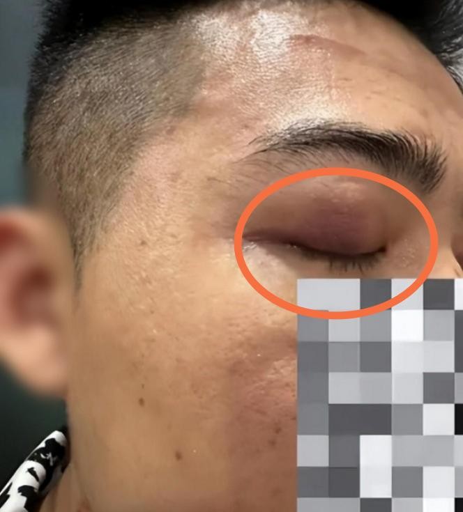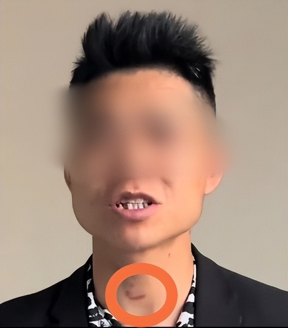 舒先生被打的鼻青脸肿,眼睛也变成了熊猫眼,脖子、面部和手臂等多处都有受伤。