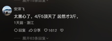 4月2日舒先生便闻声而去,购买了5斤龙虾,然而在舒先生用自己的秤,重新秤了一下发现,买的原本是5斤的龙虾,现在只有3斤1两,少了将近2斤。