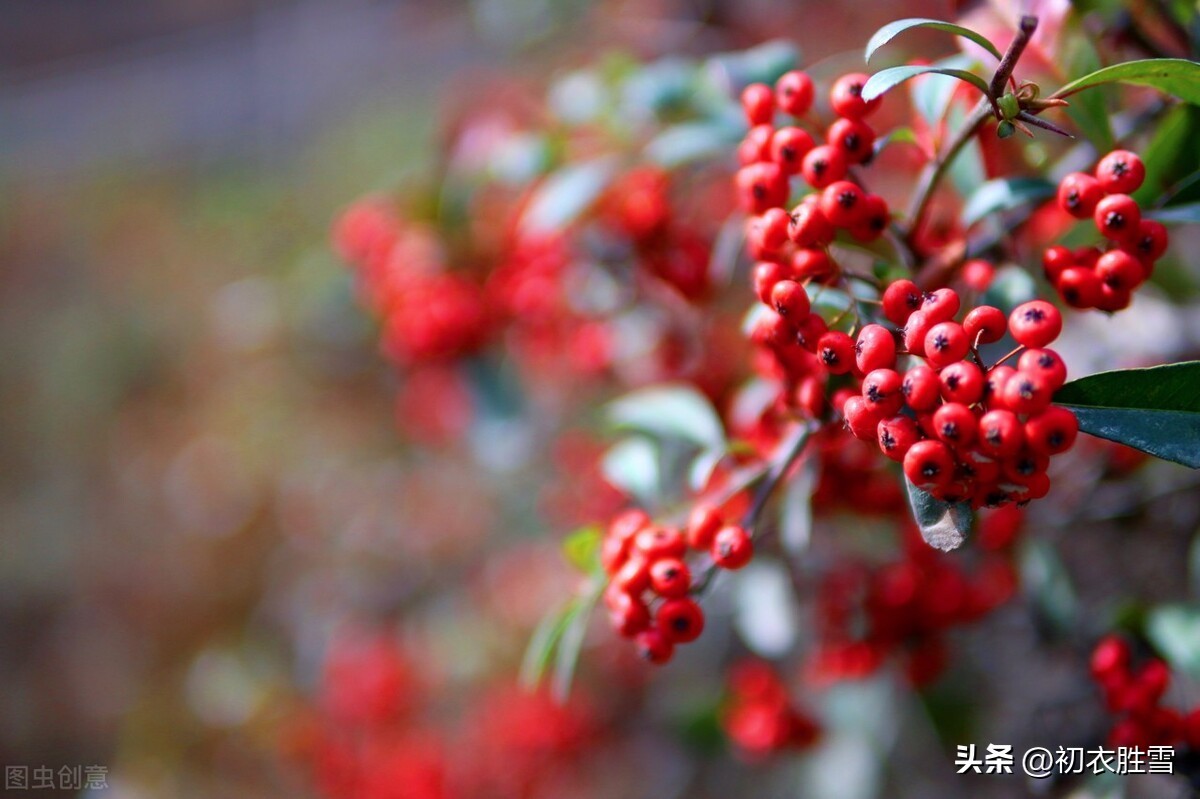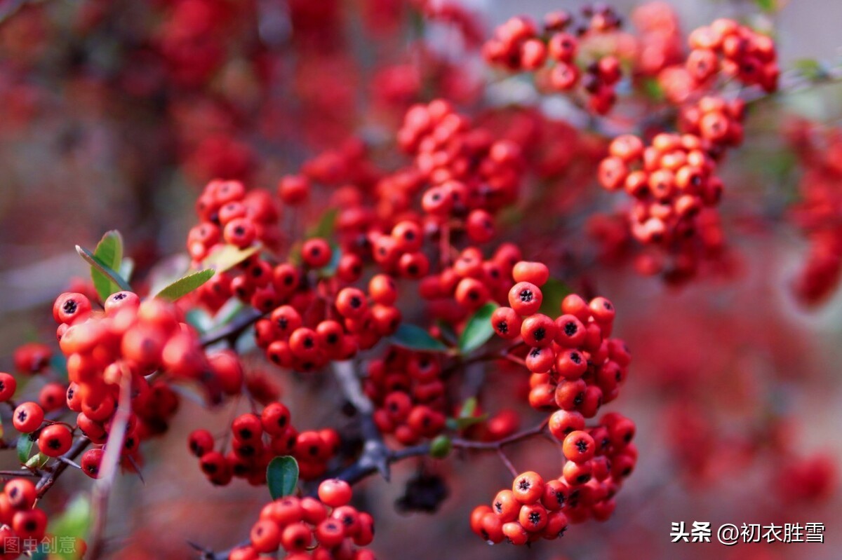 或者是由于秋天气肃,我马上联想到王维的另外一首名诗,遥知兄弟登高处,遍插茱萸少一人。因为在沉静的秋天的九月九,茱萸果,也是红色的,唐宋之人采撷茱萸之红果枝佩戴在帽子胸前,一来辟邪,二来唐人钟情红色,象征阳气,明丽,有着秋天视觉上的美好。
