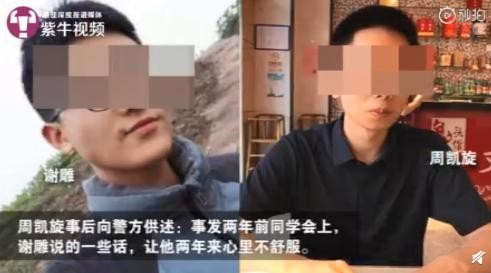 据媒体报道,周凯旋事后向警方供述:事发两年前的同学会上,谢雕说的一些话,让他两年来心里不舒服。这或许就是所谓的杀人动机。