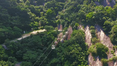 体力不够?索道来凑!搭乘缆车一路向上,拨开层层云雾,沿途风景尽收眼底,为接下来的徒步蓄能。