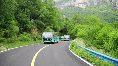 购票后,搭乘景区游览车,一场清凉的探秘之旅正式拉开序幕!