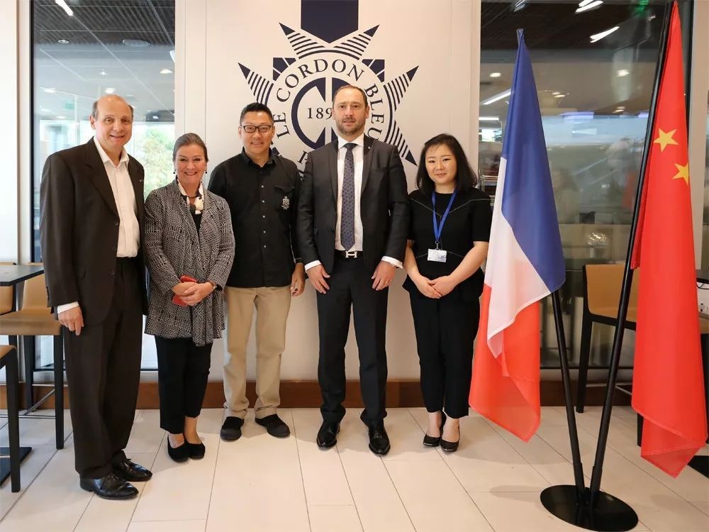 我和蓝带的校领导们合影,左一为行政总厨Eric