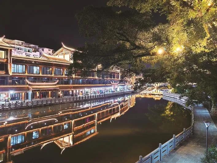 美丽的尤溪朱子古街河滨景观。(肖 丹 摄)