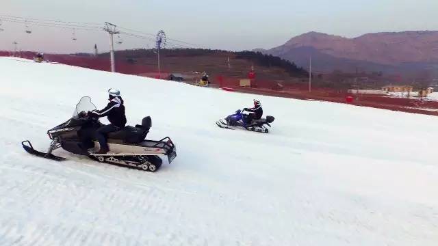 滑雪场会场搭建极限运动舞台,邀请雪地摩托特技演员进行表演,惊险刺激。