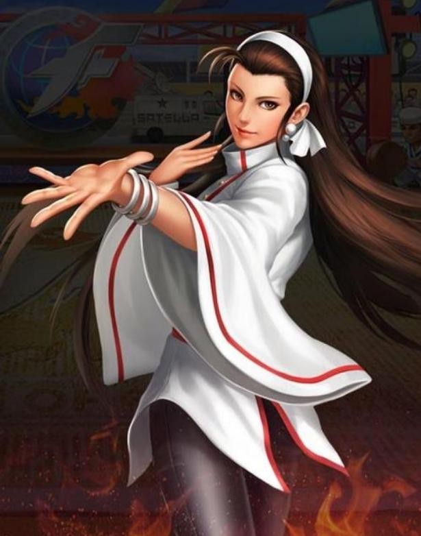2、神乐千鹤:人物简介:守护着八咫之镜的八咫一族后代,原名叫八咫千鹤,为避免大蛇的追杀而改姓。KOF96的小BOSS,同时也是KOF96大会的主办人。她与高尼茨为敌对关系,因为曾经高尼茨杀害了千鹤的姐姐,就是后来KOF2003复活的神乐万龟。KOF97与草薙京和八神庵合力封印大蛇。往后KOF2003被遥彼篇人物牡丹操纵,用八咫之镜制造克隆京和神乐万龟。KOF2003无界逃走后,自己也深受负伤,同时八咫之镜也被ASH CRIMSON夺走,往后的拳皇系列在没看到神乐千鹤参战。KOFXIII只是在过场动画跑龙套。