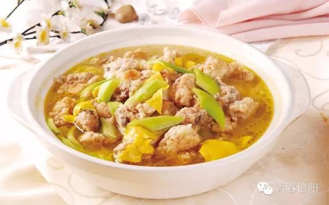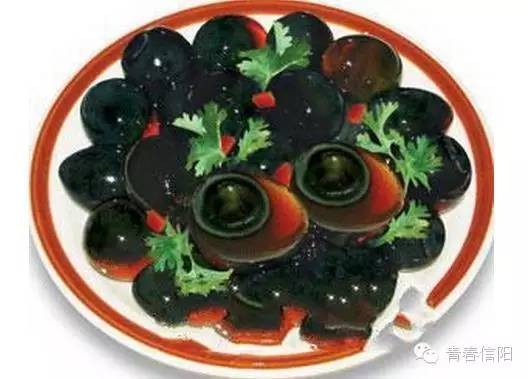 其实,信阳也没啥好吃的。只是有知名中外的“信阳南湾鱼”以及罗山大肠汤、固始鹅块、面炕鸡、糍粑、腊肉、固始皮丝儿、商城麻鸭、统鲜鱼、板栗、潢川贡面、石凉粉、炖菜、息县油酥馍、信阳热干面、固始甲鱼、光山青虾、息县香稻丸、固始萝卜以及罗山松花蛋,等等等等吧!