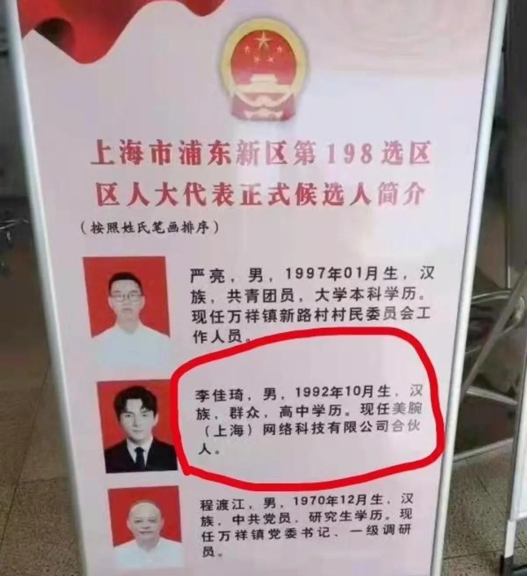 头部主播李佳琦陷入“高中学历”风波。网络流传一张李佳琦参选上海浦东新区人大代表198选区候选人公示的图片,其中李佳琦的资料写着:男,1992年10月生,汉族,群众,高中学历。而此前公开报道显示,李佳琦的母校是南昌大学,李佳琦也多次以校友身份出现在南昌大学的官方微博中。