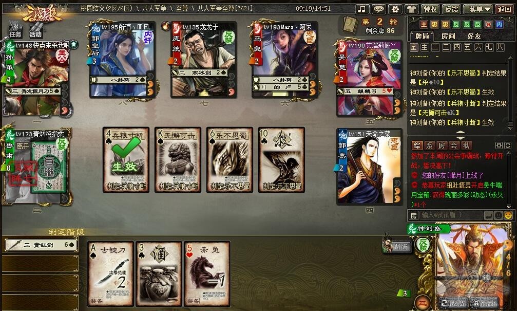 用选将卡在八人军功场玩了几局,小编发现,神刘备其实并不像很多玩家讲得那么弱,绝对是一个被低估的菜刀,是个不折不扣的菜刀级武将,只要不遇上魏国的少数几个卖血流,一回合收割几个人头根本不在话下!