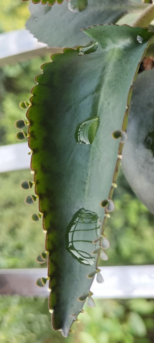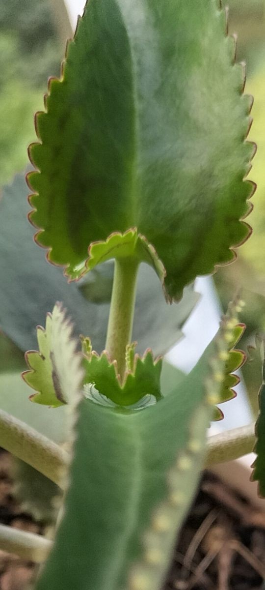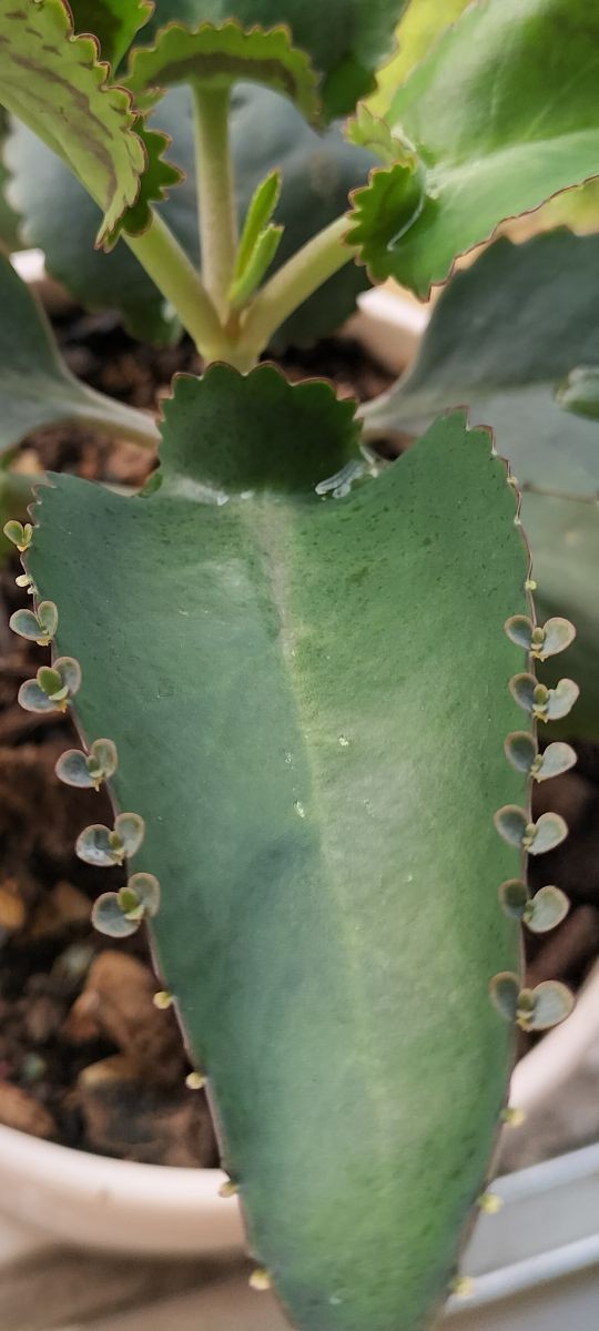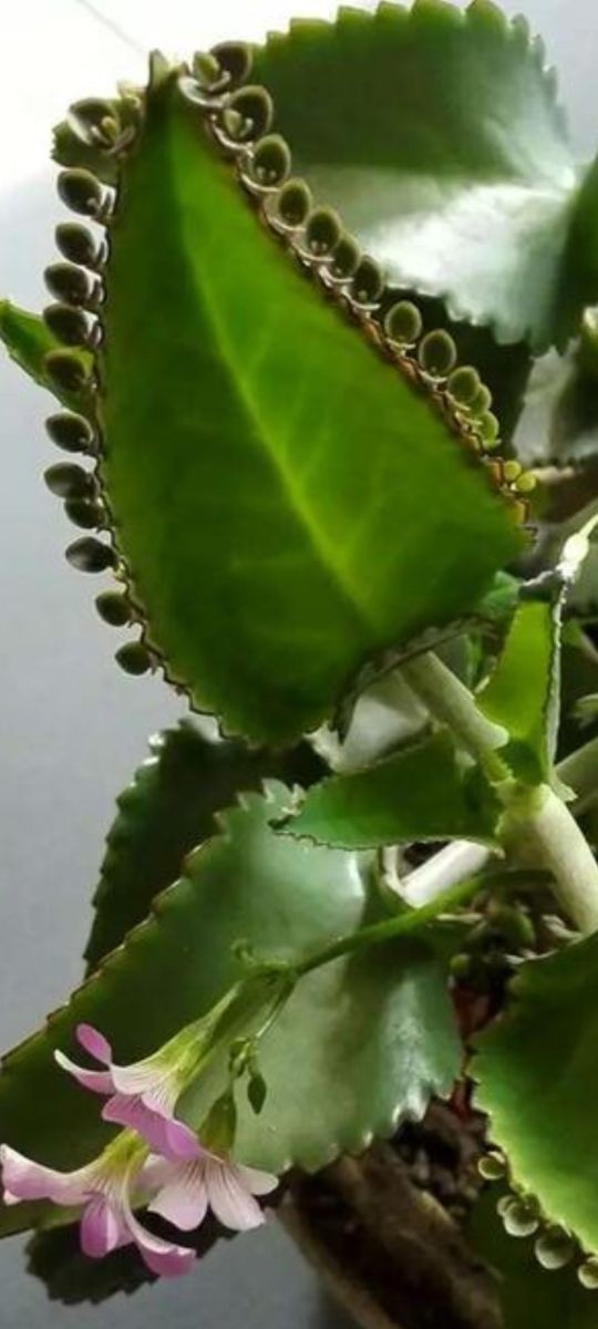 而这种植物浑身成熟的叶片边缘凹陷的地方都长满了芽,这些小芽还长出了自己的根,掉到泥土上扎根进去都会变成苗。