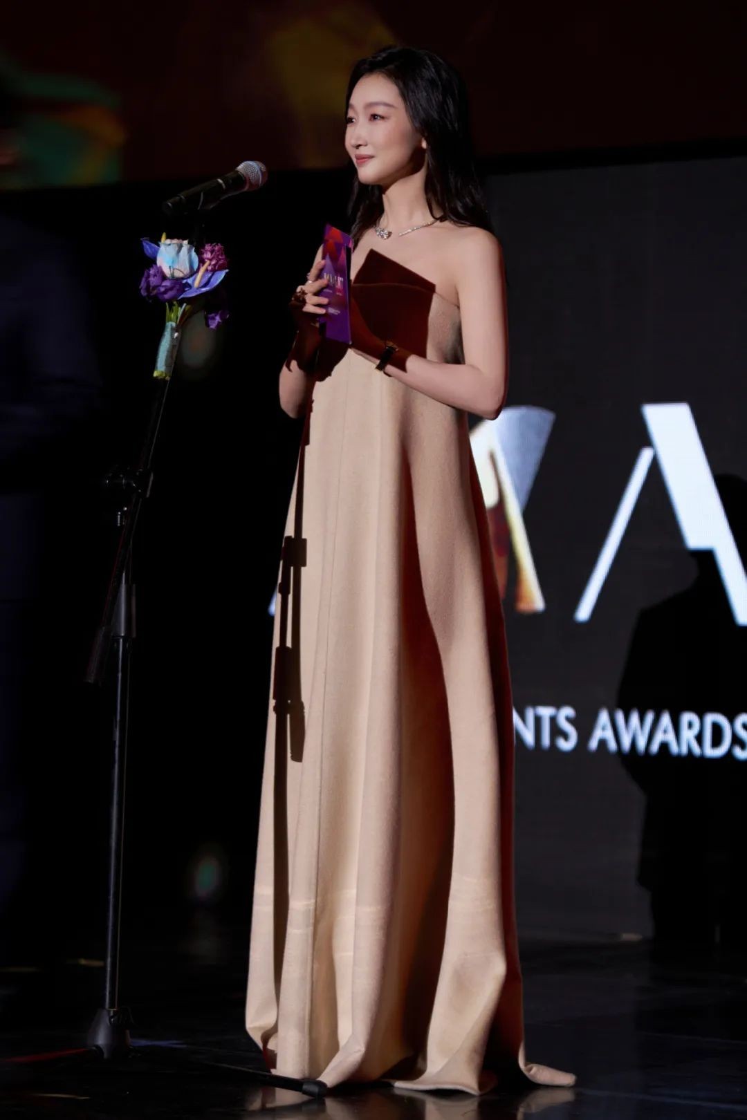 白色刺绣礼服惊艳开幕式,香槟色抹胸裙优雅亮相颁奖礼,再到闭幕式的浅绿飘带长裙,每一套造型都彰显着她的个人魅力。