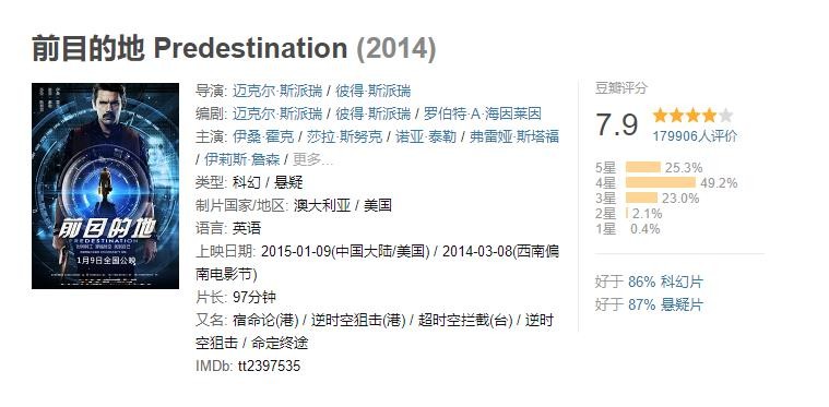 科幻+平行时空+漂亮女主,前十分钟比较枯燥,但一定要坚持下去,看到最后才能发现此片的高明之处。这部悬疑片就是薛定谔的猫,一只白猫,一只黑猫,抓住人们心里有耗子的就是好猫。