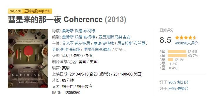 4.《彗星来的那一夜》2013 豆瓣8.5