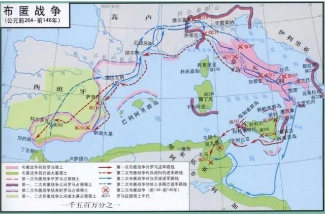 首先明确几个时间节点,对数字讨厌的可以略过此段。从公元前264年到公元前146年,在地中海地区上演了一部长达118年的“战争与和平”的大片,罗马和迦太基之间先后共发生了三次战争:第一次打了23年,然后有22年的停战;第二次打了16年,而后有53年的停战——两次 休战 都是迦太基用妥协换来的短期和平;第三次打了3年,迦太基被灭,战争结束。战争涉及海战、陆战;有正面战争也有迂回偷袭;有步兵对抗, 也有骑兵、象兵突袭;有名将汉尼拔和西庇阿的高手过招,也有无名勇士的积极作为。