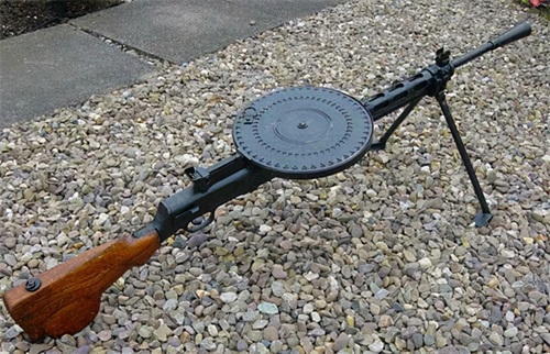 苏联第一代轻机枪是马克沁-托卡列夫轻机枪,虽然被叫做轻机枪但是也只是由M1910马克沁重机枪改来,重量上也无法算成重机枪,为此苏联军械师瓦西里·阿列克谢耶维奇·杰格佳廖夫设计了一款新的轻机枪,目的是取代马克沁-托卡列夫轻机枪装备全军,该枪有一个非常明显的特征就是一个很大的圆形弹盘,这就是捷格加廖夫DP轻机枪。