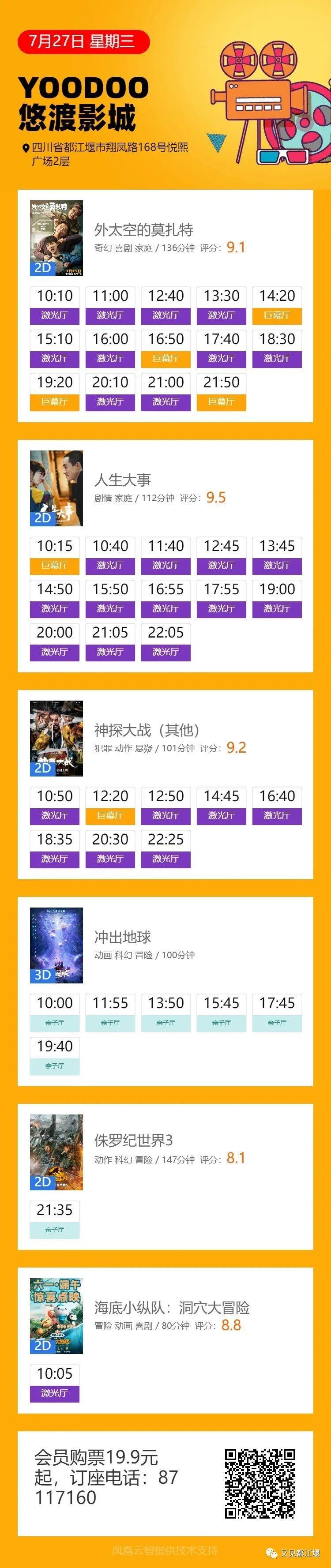 YOODOO悠渡国际影城带着好看的电影来啦!《外太空的莫扎特》、《人生大事》、《神探大战》、《冲出地球》,会员购票19.9元起~