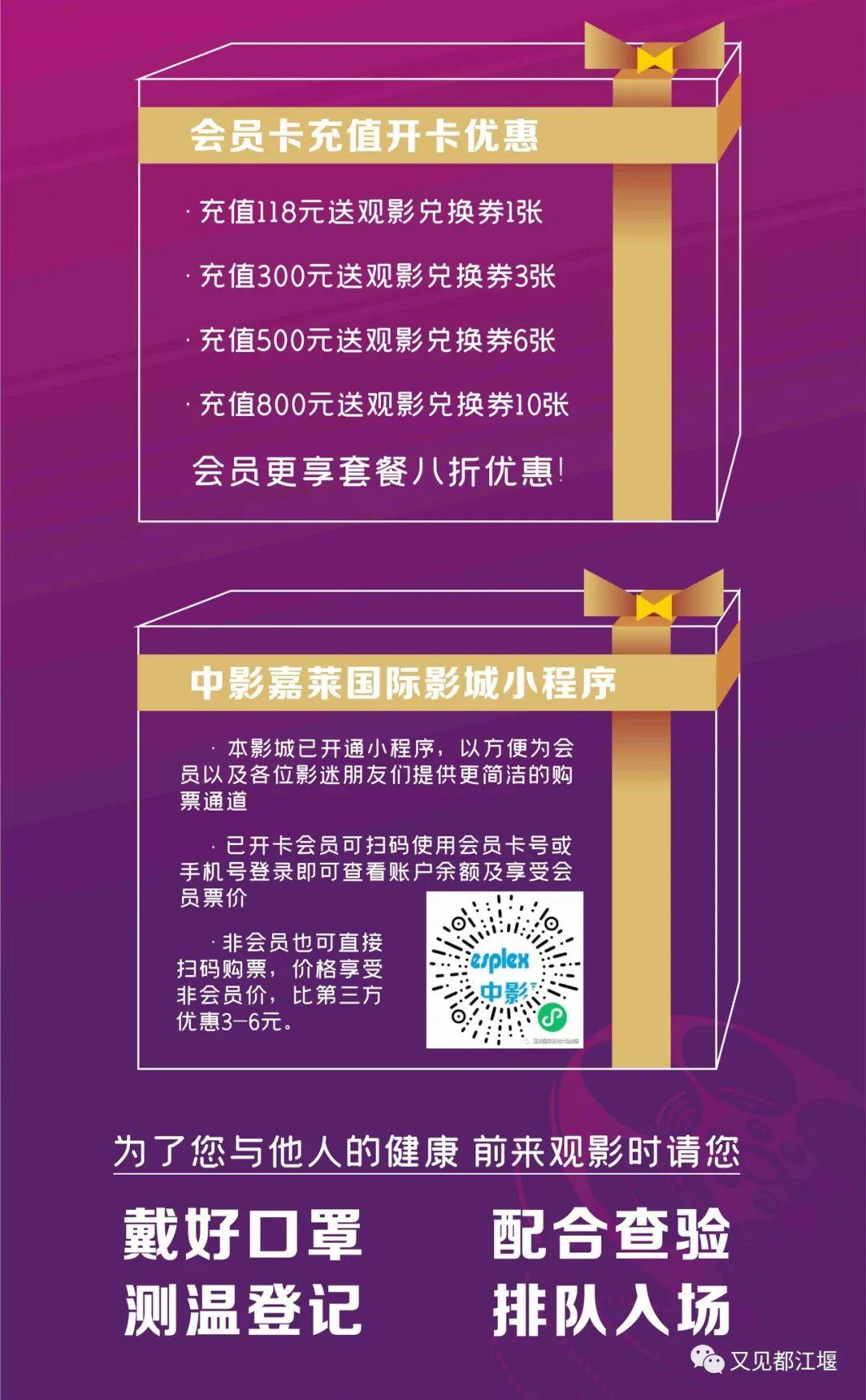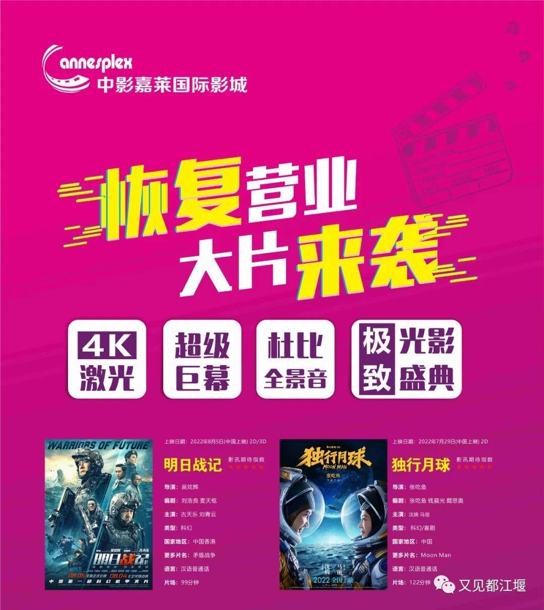告诉大家一个好消息都江堰的各大影院在短暂的歇业后终于重新启幕了!各大影院纷纷推出优惠好看的电影都给大家准备好啦先看哪一部由你说了算!↓↓↓
