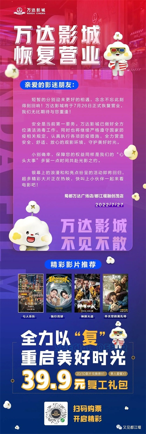 都江堰各大影院恢复营业!观影的快乐又回来啦!