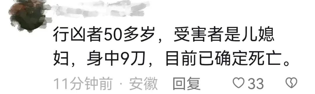 据了解,杀人凶手是一名50多岁的男人,与被害者是公公与儿媳妇的关系。